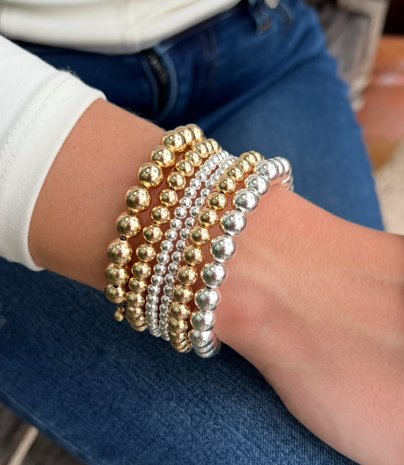 This elegant wraparound bracelet combines Gold filled and silver-plated balls for a timeless, two-tone look. Designed with flexible memory wire, it wraps comfortably around the wrist, offering an easy fit for most sizes. Its polished finish adds a touch of shine, making it perfect to wear alone or stacked with other pieces for a chic, modern style.